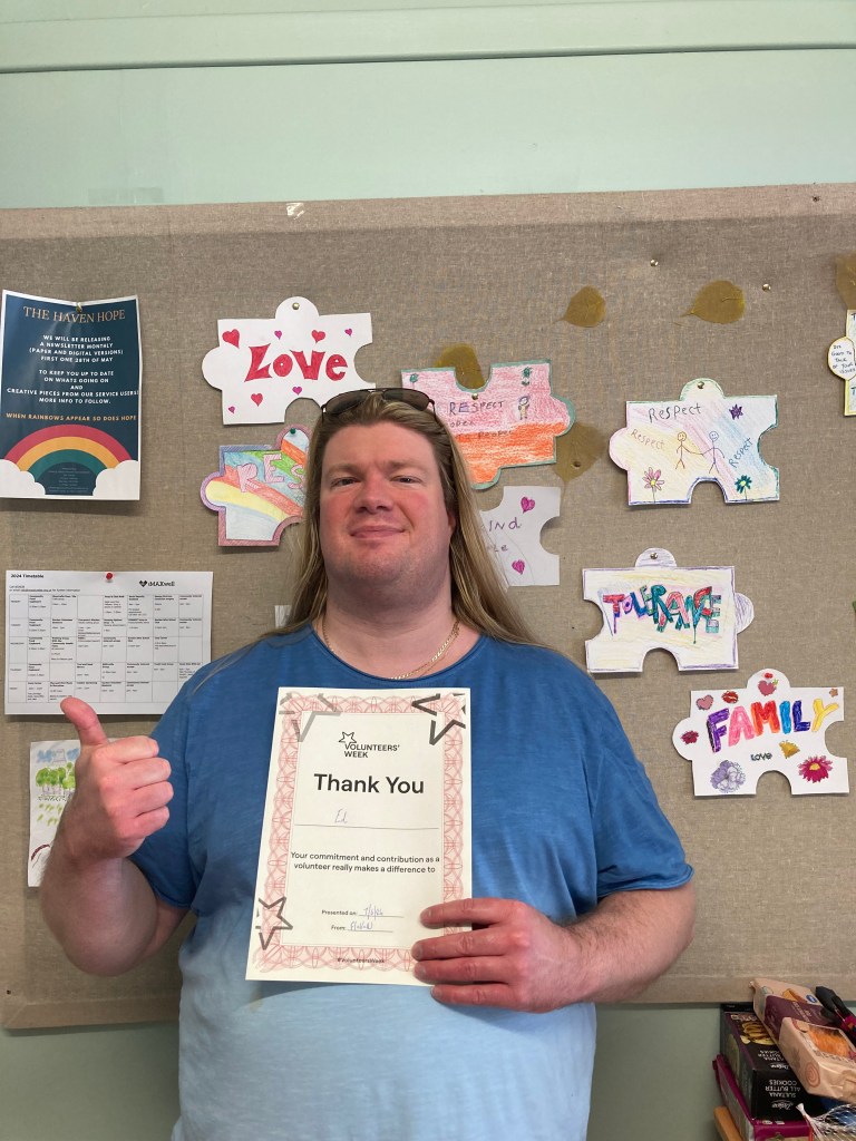 The HavenEdith & her Giant raffle prizeVolunteers week 2024Volunteers week 2024 appreciation treeArt groupArt groupVolunteer’s baking Volunteer’s baking Joseph & his diamond artNeil & josephEd with his volunteer certificateNeil at our walking groupAudrey at games nightgames night Neilsome of the team at kilt walk 2024 walking group at Dudhope parkGames nightTuesday evening mealThe local history group visits the V&AThe Dundee tapestryTaking it all inA shared historyThe history group taking a well-earned break